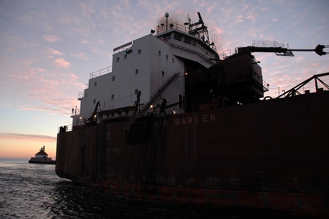 James R. Barker passing the South Breakwater Lighthouse through the canal, Duluth, Minnesota